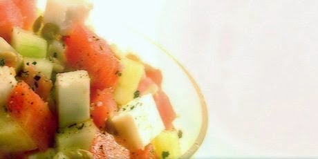 - 1 English cucumber, peeled, without the seeds and cut in 1/4 in. (1 cm) dice