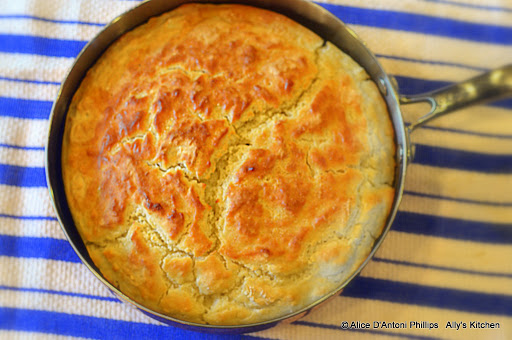 In Southern West Virginia it’s called a ‘pone’ …in the South it’s called a ‘hoecake’, and it’s typically made in a cast iron skillet There’s a version of this in the Caribbean called ‘Bake.’ And, my sweet Algerian darling shares with me that growing up her Mama made a similar big skillet biscuit, and it was served with soup. Seems lots of cultures have their own version of a big biscuit made in a skillet. It makes for an interesting bread because you can cut it in wedges or squares if you like…you can bake it in a skillet, a pot or a bread pan.