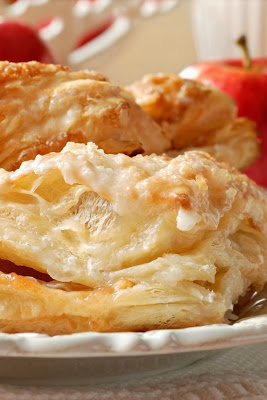 Brush the edges of each square with the egg wash and neatly place about 1/3 cup of the apple mixture on half of the square.