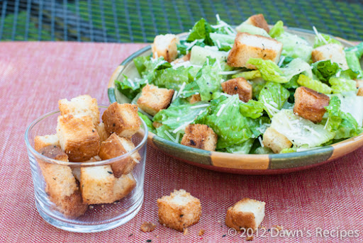 Here’s another very simple recipe for you. (And, really, aren’t those the best kind?) If you love croutons on your salad, I highly recommend you try making your own. It’s so simple, and they taste ever so much better than store bought croutons.