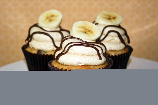 Drizzle melted chocolate over frosting and garnish with a fresh banana slice.