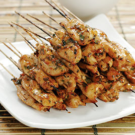 Thirty 6-inch-long bamboo skewers are required for this recipe. Do not let the chicken marinate for longer than 24 hours or its texture will turn mushy.