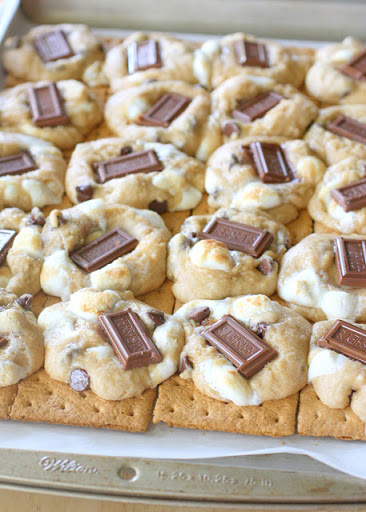 Fold in the chocolate chips and marshmallows. Chill dough in refrigerator for 1 hour to overnight (I did one batch right away and another after chilling overnight and found there was no difference.)
