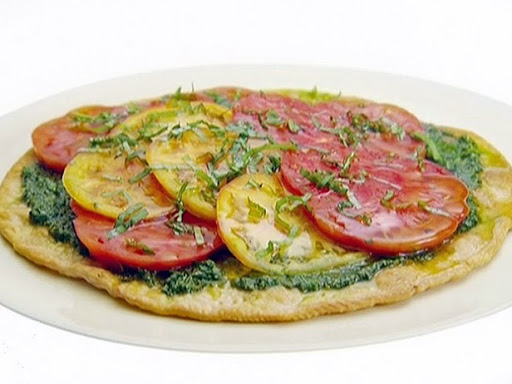 - 2 medium (12 ounces) heirloom or 4 plum tomatoes, cut into 1/8-inch thick slices