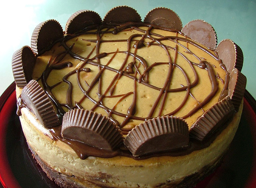 Peanut butter cheesecake, filled with peanut butter cups. All on top of a brownie bottom crust. That is also filled with peanut butter cups. Extremely decadent. And delicious.