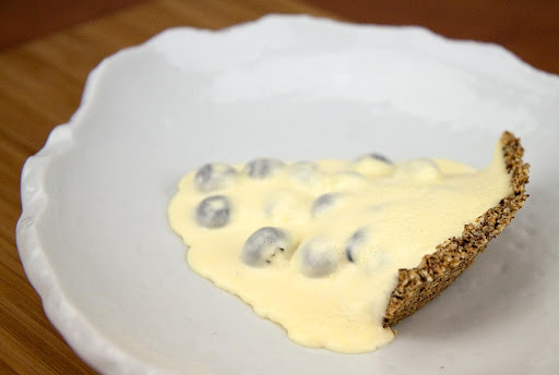 Pour your hazelnut meal into a mixing bowl and add your honey (you can skip the honey, but it does help to hold the crust together), melted butter and a dash of salt. Mix the ingredients until the meal is well coated with the honey and butter. Grease a 9-inch pie pan.