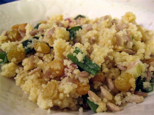 A mix of green onions, sunflower seeds, and golden raisins combine to make a surprisingly delicious couscous.