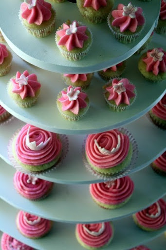 Vanilla Cupcakes topped with pretty pink buttercream and shimmering pink gumpaste decorations