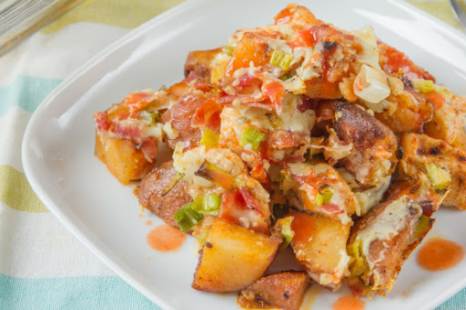 Cover with foil. Bake 20 minutes; uncover and bake 15 minutes longer or until potatoes are tender and juice of chicken is no longer pink when centers of thickest pieces are cut.