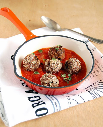 Place the beef, dried oregano, Tabasco, salt, black pepper, olive oil (and garlic, if using), egg, 1/3 cup breadcrumbs , onion and parsley in a large bowl and mix to combine (I prefer to use my hand to do that). Try to shape some of the mixture into a ball – if too wet, add 1 tablespoon breadcrumbs and mix again. Grab 1 ½ tablespoons of the mixture and shape into compact balls (the job becomes easier if you lightly wet the palms of your hands). Roll the meatballs in the extra breadcrumbs. Place the meatballs onto the prepared sheet and bake until firm and cooked through (about 40 minutes).