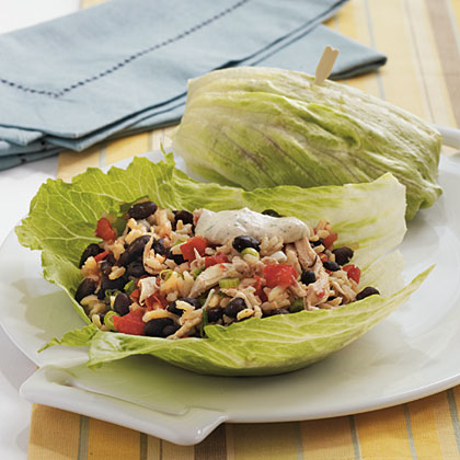 Crisp iceberg lettuce cradles a Southwest-inspired mix of rice, beans, chicken, and salsa. Find fresh salsa in the produce section of your supermarket. It generally has 50 percent less sodium than bottled salsa, and it tastes like it's homemade.