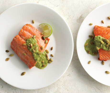 Pan-Seared Salmon with Pumpkin Seed-Cilantro Pesto