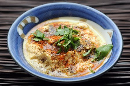 Place all hummus ingredients into a blender or food processor; blend until smooth. Refrigerate for about 1 – 3 hours for flavors to blend. Transfer mixture to a serving plate and spread hummus out evenly into a circle. Garnish with greek olives n cilantro. Drizzle with additional olive oil. Serve with warm pita squares.