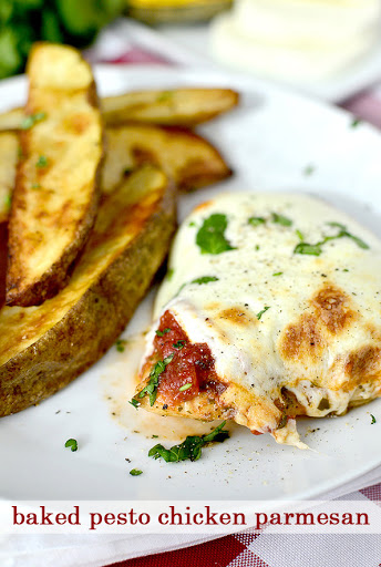 Preheat oven to 400 degrees. Season chicken thighs with salt and pepper then add to a 8×8″ or 9×12″ baking dish. Add pesto then use hands to evenly coat. Spoon marinara sauce over top of thighs followed by mozzarella cheese then cover tightly with foil and bake for 20 minutes. Remove foil then bake for 10 more minutes, or until chicken is cooked through and cheese is golden brown and bubbly.