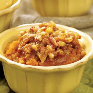 Combine pecans and remaining 3 ingredients in a small bowl. Sprinkle over sweet potatoes.