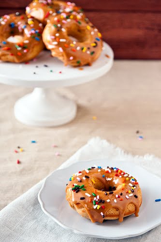 Drizzle the donuts with dulce de leche and add sprinkles.