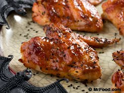 Remove wings from oven, brush with sauce, turn wings over and brush with more sauce. Return wings to oven and bake 30 more minutes.