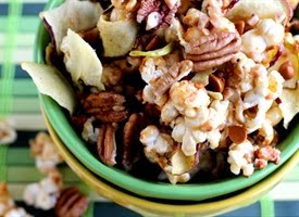 6Sprinkle the cinnamon chips, toffee bits, pecans, and dried apple chips over the popcorn. Toss lightly. Allow to cool before serving.