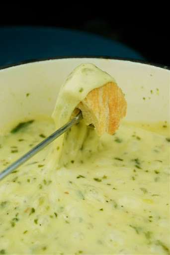 Transfer to a cheese fondue pot and keep warm with a burner. Serve right away.