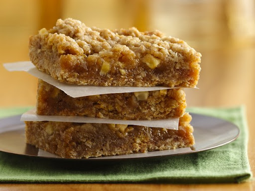 3. Remove pan from oven. Sprinkle apples and walnuts over warm base. Pour caramel mixture evenly over top. Sprinkle with reserved topping mixture.