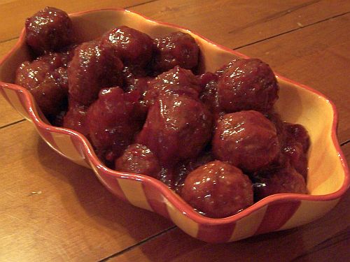 Boil. Add to meatballs and cook in oven for 1 hour or put in slow cooker.