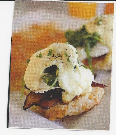 4. Arrange the toasted English muffin halves on plates and top with the bacon, poached eggs, arugula and hollandaise sauce. Serve immediately.