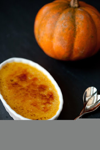 Scrape out the seeds of the vanilla bean with a paring knife. In a small bowl, whisk together egg yolks, brown sugar, pumpkin, and vanilla until light in color.