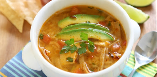 Fry tortilla strips in oil, until crispy. Serve soup in individual bowls, or in a large tureen. Serve all toppings and tortilla strips in separate dishes, so that each person can garnish their soup to their liking.