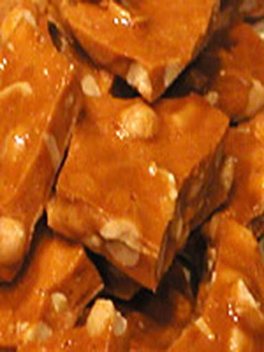 Remove from the heat immediately and quickly add the remaining 1 stick butter and the vanilla, baking soda and salt. Stir only until the butter melts, and then quickly pour the brittle onto the cookie sheet, spreading the mixture thinly. When the brittle has completely cooled, break the candy into pieces and store in a tightly covered container.