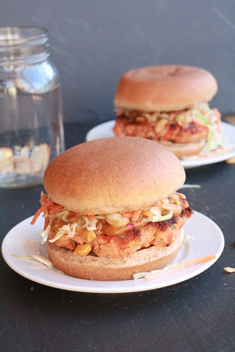The patties can be slightly difficult to put together since they are so "wet." So to cook them, I heated a large nonstick skillet over medium-high heat, added 1 tablespoon of peanut oil then quickly formed the patties one at a time, placing them in the skillet. Cook for 3-5 minutes, until you can see the edges brown and the salmon becoming opaque so the burgers flip easily. Flip gently but quickly, and cook for another 3-5 minutes or until the burgers are cooked through. The salmon cooks quickly so keep a close eye on them, you dont want a dry burger!