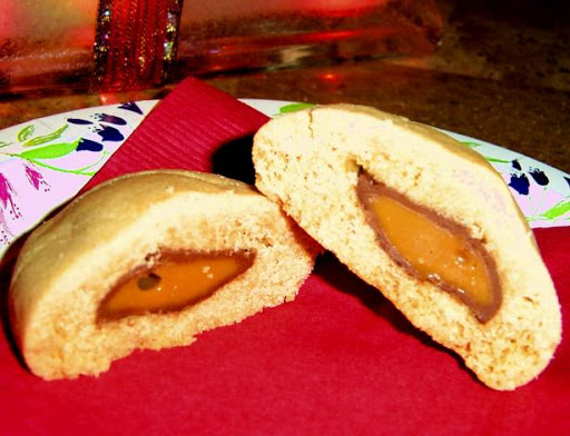 I found this recipe next to a Snickers coupon. It is absolutely fabulous. The Snickers is hidden inside the cookie so it makes for a nice surprise when you bite in. This cookie works perfectly as part of a Xmas cookie platter. If you are a Snickers fan, you are in for a real treat.
