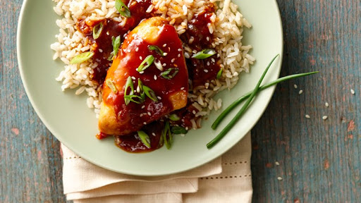 1. Spray 1 1/2- to 1-quart slow cooker with cooking spray. Place chicken in slow cooker. In medium microwavable bowl, mix onion, sesame oil, garlic chili sauce, tomato paste and gingerroot. Microwave uncovered on High 4 to 5 minutes; stirring occasionally, until onions are softened. Stir in honey and soy sauce.