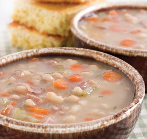 In a large saucepan, combine beans and 4 cups water. Bring to a boil; reduce heat to low. Simmer, uncovered, for 2 minutes. Remove from heat. Cover and let stand for one hour. Drain and rinse beans; return to pan. Add remaining water and remaining ingredients. Bring to a boil; reduce heat to low. Cover and simmer for 1-1/4 hours, or until beans are tender. Discard bay leaves. Using a fork, slightly mash some beans against the side of the saucepan to thicken soup.