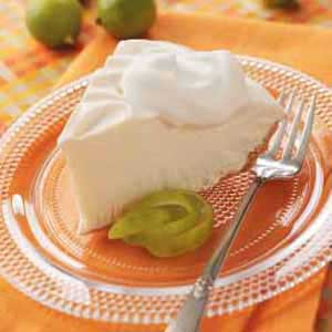 In a large bowl, ccmbine milk and lime juice. Refrigerate 1/4 cup whipped cream for garnish. Fold a fourth of the remaining whipped cream into lime mixture; fold in remaining whipped cream. Spoon into crust. Cover and freeze overnight