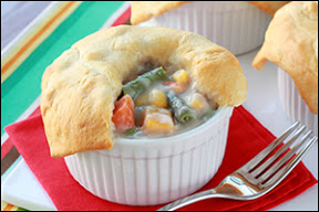 1/6th of recipe (1 pot pie): 244 calories, 7g fat, 907mg sodium, 38.5g carbs, 3.5g fiber, 7.5g sugars, 5.5g protein -- PointsPlus® value 6*