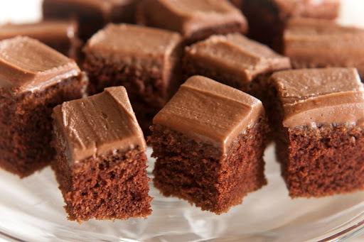 9. Pour warm frosting over brownies as soon as you take them out of the oven. Cool. Cut.