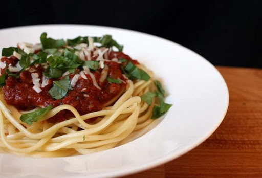 I used linguine instead of spaghetti. It's a little bit wider and flatter, but not as much as fettuccine. I like it.