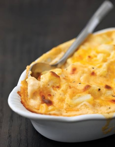 Stir in the 1 ½ cups of cheese, salt, pepper, and garlic powder, and whisk just until the cheese melts, about 2 minutes. Remove the sauce from the heat, pour over the cauliflower, and stir all to combine.