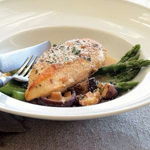 Pan-roasted Chicken with Asparagus and Shiitakes