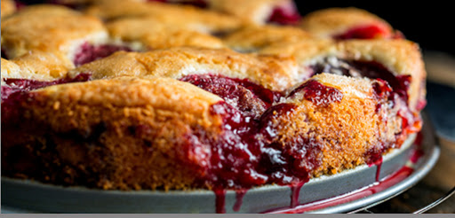 spoon mixture into a greased 9-inch spring-form pan. Cover top of batter with plum halves, skin side up.