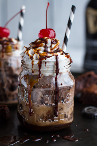 Mini Chocolate Stout Brownie Sundae Floats with Burnt Irish Caramel + Hot Fudge
