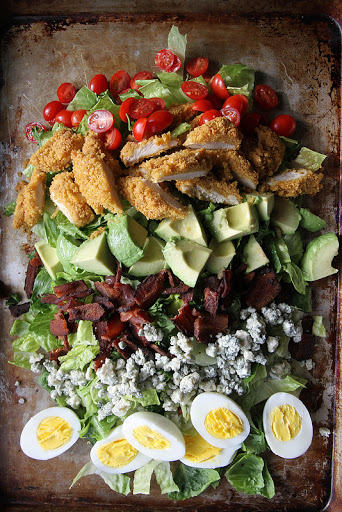 Arrange the lettuce on a platter and add all of the other elements to the salad.