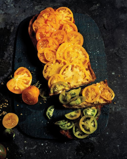 Tomato Ombre on Grilled Rustic Bread