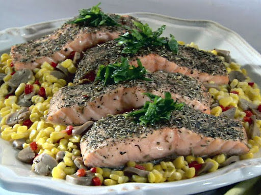 Herb Crusted Salmon with Sweet Corn and Mushrooms 1 Picture