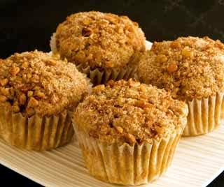 Cream the butter and sugar together until light and fluffy. Stir in the maple syrup and the eggs and beat until well blended. Add the flour mixture alternately with the milk and beat until well blended. Stir in the walnuts. Spoon the batter into the muffin tins filling each about 3/4 full.