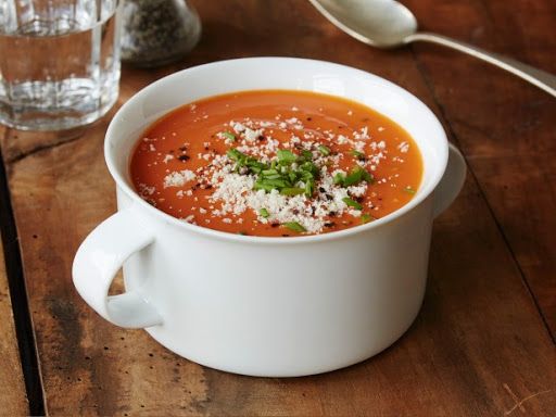 To serve, ladle the soup into bowls and sprinkle with Parmesan and chives.