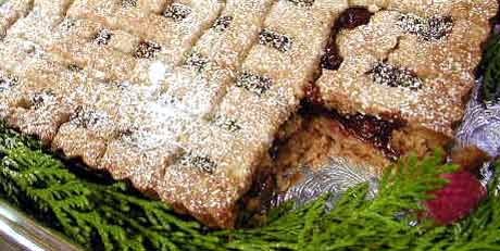 17. Place the dough strips on top of the jam lengthwise and then crosswise, at intervals, to form a lattice.