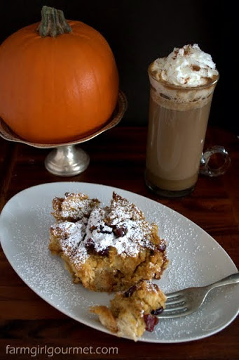 Pumpkin Challah Bread Pudding with Dried Cranberries