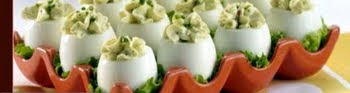 Place filling in a small sealable plastic bag and cut the corner off to form a makeshift pastry bag. Pipe the filling into the egg whites and top with shredded lettuce and sliced tomatoes.