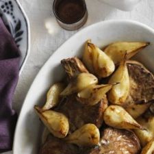 TRIM PORK ROAST, CUT INTO 1/4'S, SEASON WITH RUB COVERING PORK TOTALLY.